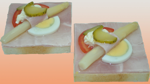 Toastbrot [WEIZENMEHL, VOLLMILCH, BUTTER, Backhefe, jodiertes Speisesalz, GERSTENMALZMEHL, Dextrose, WEIZENSTÄRKE, Zucker, Acerola Fruchtpulver (Träger Maltodextrin), Enzyme], Hinterschinken 28% (Schweinefleisch, Wasser, Nitritpökelsalz (Kochsalz, Konservierungsstoff: E250), Traubenzucker, Milchzucker, Stabilisator (E450, E451), Gewürze, Antioxidationsmittel (E301), Geschmacksverstärker (Mononatriumglutamat), Sellerie, Gewürzextrakte), Spargeln, Tomate, EIER, BUTTER, Essiggurken, Mayonnaise (Sonnenblumenöl, Eigelb (Eier aus Bodenhaltung), Tafelessig, Senf)